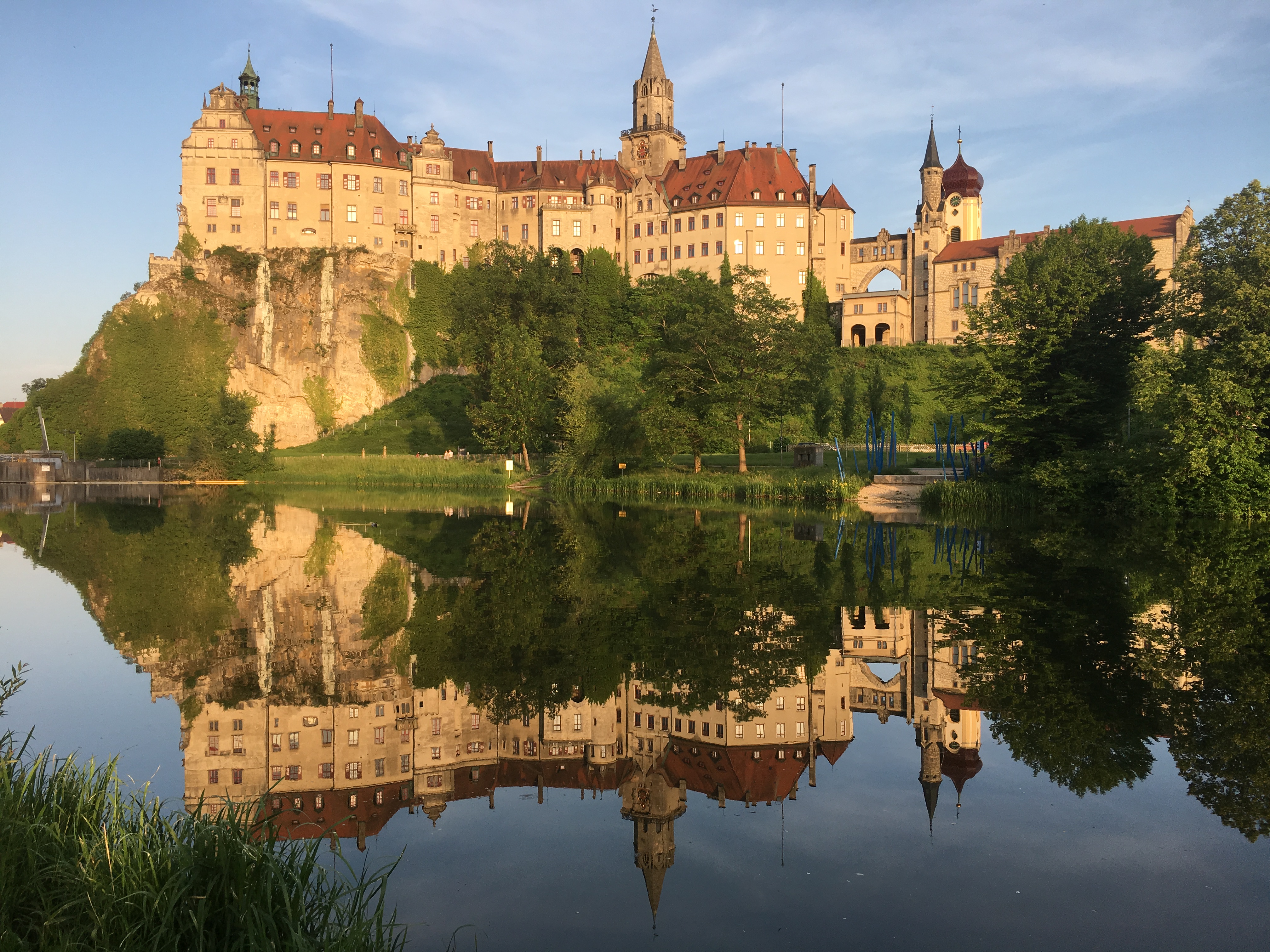 A hot shower at our hotel was welcome and after a while the sun came out and we wandered into the ridiculously attractive town of Sigmaringen. After a wander we settled for a well deserved beer under umbrellas in an outdoor cafe where I made another sketch before an excellent chicken salad dinner.
